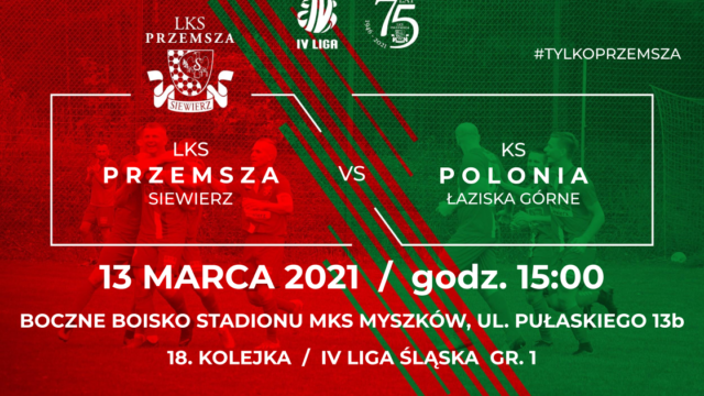Spotkanie XVIII kolejki rozegrane zostanie w sobotę 13 marca, o godz. 15.00 wyjątkowo nie naszym stadionie (nasze naturalne boisko nie jest jeszcze gotowe), a na bocznym boisku ze sztuczną nawierzchnią stadionu MKS Myszków (Myszków, ul. Pułaskiego 13b).