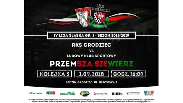 Przed piłkarzami Przemszy Siewierz drugi mecz wyjazdowy tej rundy. W V kolejce Haiz IV ligi gr. 1 podopieczni trenerów Mosny i Oklejewskiego udadzą się do Będzina-Grodźca na mecz z tamtejszym Robotniczym Klubem Sportowym w małych derbach powiatu będzińskiego. Drużyna z Kijowskiej to nasz sąsiad z ligowej tabeli. Grodźczanie jak dotąd nie przegrali meczu (bilans 1-2-0), ale rozegrali o jeden mniej (mecz 2. kolejki z Wartą Zawiercie przełożony na koniec września). Na swoim koncie mają zatem zwycięstwo 3-0 z myszkowskim KS-em oraz dwa remisy: z Polonią Poraj 2-2 i również 2-2 w ubiegłej kolejce ze Slavią w Rudzie.