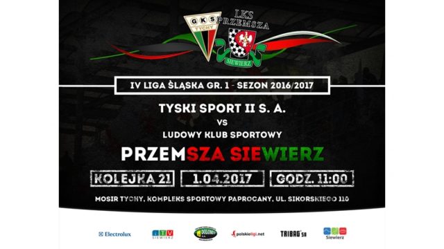 Przed nami drugie wyjazdowe spotkanie Przemszy tej wiosny. W sobotę (1 kwietnia) w ramach XXI kolejki IV ligi LKS uda się do Tych na mecz z tamtejszym Tyskim Sportem II S.A. Tyska „dwójka”, a de facto GKS II Tychy, to drużyna, która w tabeli naszej grupy zajmuje 15. miejsce i wywalczyła 17 punktów (bilans 5-2-13) w dwudziestu meczach. W trzech spotkaniach rundy rewanżowej tyszanie zdobyli, podobnie jak Przemsza, tylko jeden punkt, po remisie 1-1 z liderem. Minione dwa mecze „Tyscy” przegrali 2-3 z Sarmacją i 0-2 z rezerwami katowickiej GieKSy. Siewierzanie po remisie ze Slavią (0-0) i porażkach z Polonią (0-1) i Grodźcem (1-3) plasują się na 8. miejscu (28 pkt, bilans 8-4-8), ale nasza przewaga z rundy jesiennej znacznie stopniała i jesteśmy doganiani przez ekipy m.in. z Poraja czy Czeladzi. Słabszy start „wiosny” zanotowali jedynie piłkarze rezerw Piasta i myszkowskiego KS-u (i oczywiście wycofany Nadwiślan). Podopieczni trenera Łukasika w tym roku jeszcze nie wygrali, w trzech meczach zdobyli ledwie jedną bramkę (Zawadzki), a dwa z nich kończyli w dziesiątkę (czerwone kartki Tokarz i Fredyk). W sierpniowym spotkaniu między naszymi drużynami w Siewierzu padł wynik 2-1 dla Przemszy, po golach Tukaja oraz Czerwińskiego w końcówce meczu. Mamy nadzieję, że 3 punkty w końcu trafią do Siewierza bowiem siewierzanie znacznie lepiej spisują się na „wyjazdach” niż w meczach domowych. W tabeli naszej grupy dalej prowadzi tarnogórski Gwarek z sześciopunktową przewagą nad Wartą i Sarmacją. Czwarty jest radzionkowski Ruch (8 pkt straty), a piąty RKS (już z 13 pkt starty).