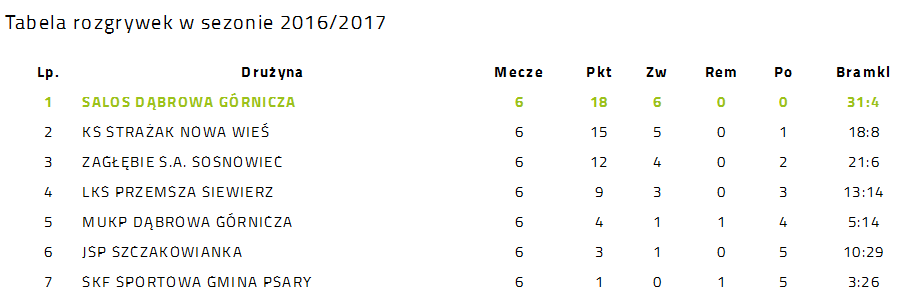 Kolejka 6: SALOS D. G. 7-1 Przemsza