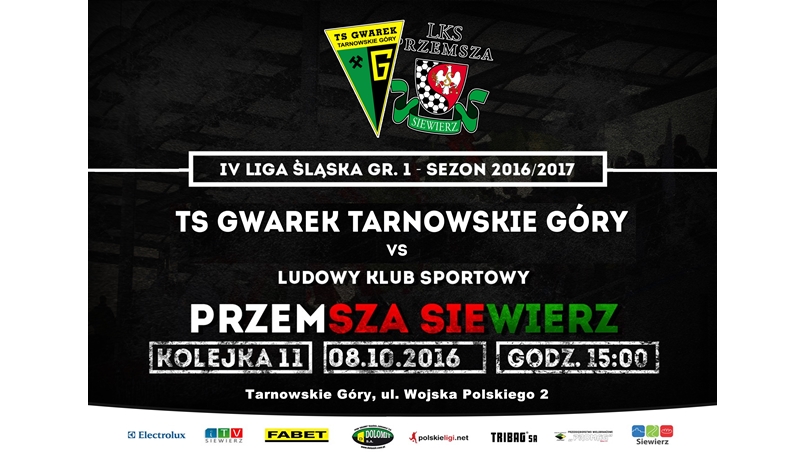 W najbliższą sobotę, tj. 8 października, Przemsza uda się na wyjazdowe spotkanie do Tarnowskich Gór na mecz z tamtejszym Gwarkiem. Piłkarze ze „srebrnego miasta” zajmują wysokie 3. miejsce w tabeli IV ligi z dorobkiem 22 punktów (bilans 7-1-2). Tarnogórzanie przegrali w sezonie dwa spotkania: z rezerwami Piasta 0-1 i wzmocnionymi rezerwami Ruchu 2-3, a zremisowali z radzionkowskimi „Cidrami” 1-1. Z siedmiu zwycięstw piłkarze Gwarka aż cztery wygrali po 1-0. W poprzednią sobotę Gwarek pokonał rezerwy GieKSy właśnie 1-0. Do lidera i wicelidera tarnogórscy piłkarze tracą odpowiednio trzy i dwa punkty. W spotkaniach pomiędzy naszymi drużynami w poprzednim sezonie dwukrotnie lepsi byli tarnogórzanie: na własnym stadionie pokonali nas 2-1 (bramka LKS: M. Marko), a w rewanżu w Siewierzu ulegliśmy 0-2. Przypomnijmy, iż piłkarze TS-u wygrali naszą grupę w sezonie 2015/2016 i grali baraż o III ligę. Niestety ulegli dwukrotnie Unii Turza Śląska i w tym roku dalej jako czwartoligowiec i faworyt rozgrywek walczą o awans. Siewierzanie podbudowani zwycięstwem z wyżej notowanym Ruchem Radzionków na pewno nie staną w sobotę na przegranej pozycji mimo dzielących nas miejsc w tabeli. „Biało-czerwono-zieloni” nie przegrali od czterech spotkań (ostatni raz ulegli Piastowi II 3 września)! Jeśli nasi piłkarze zagrają tak mądrze jak z „Cidrami” możemy być spokojni o pozytywny wynik. Po dziesięciu jesiennych meczach zajmujemy 10. miejsce, na które złożyły się 4 zwycięstwa, 3 remisy i 3 porażki. Do piątego Nadwiślana tracimy ledwie dwa „oczka”, a nad miejscami spadkowymi mamy już sześć punktów przewagi. Siewierski LKS na wyjazdach wygrał raz, trzy razy zremisował i raz przegrał. Gwarek w meczach domowych spisuje się znakomicie – cztery zwycięstwa w czterech meczach. Najmocniejszymi punktami „gwarków” są zapewne ex-ligowcy jak Pach i Jarka, ale również Polis, Kuliński czy Rosiński.